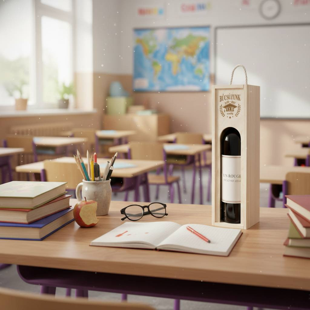 gravírozott fa Ballagásra Búcsúzunk - bortartó doboz