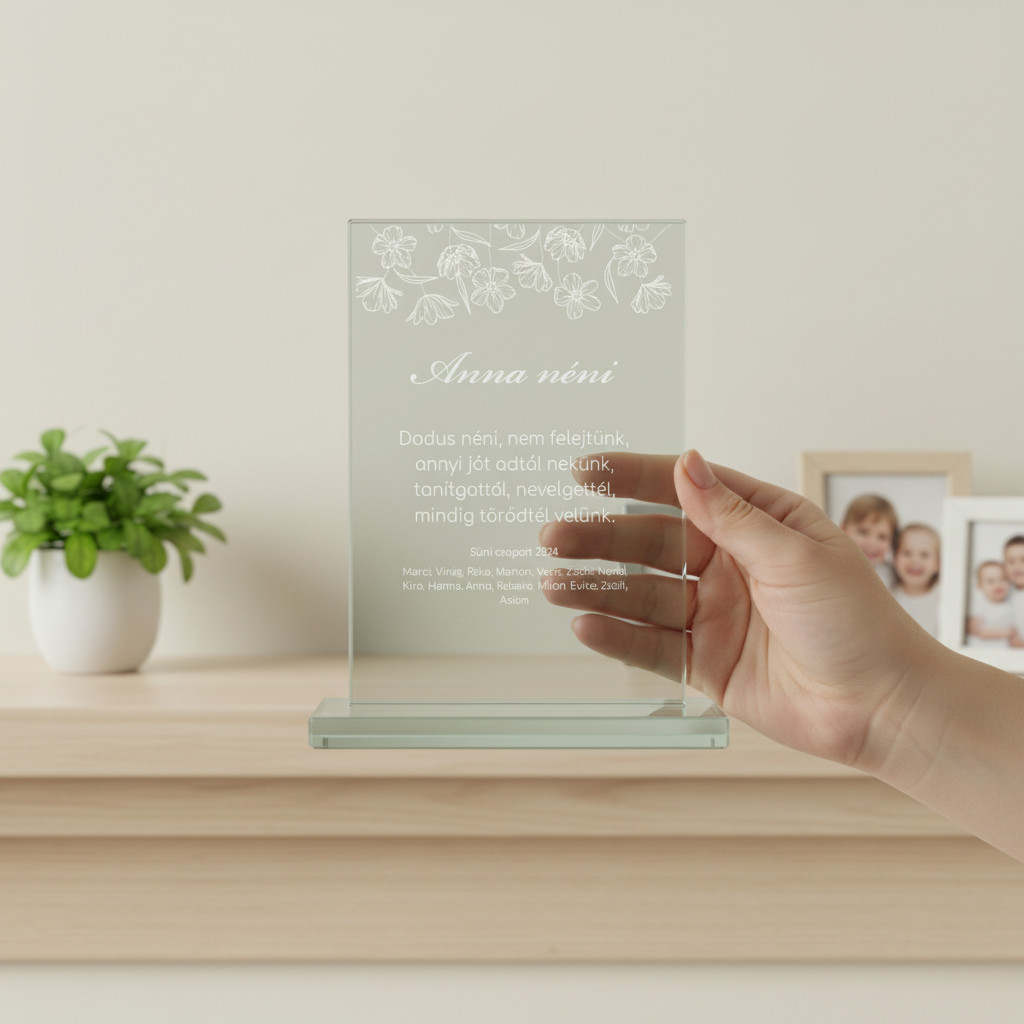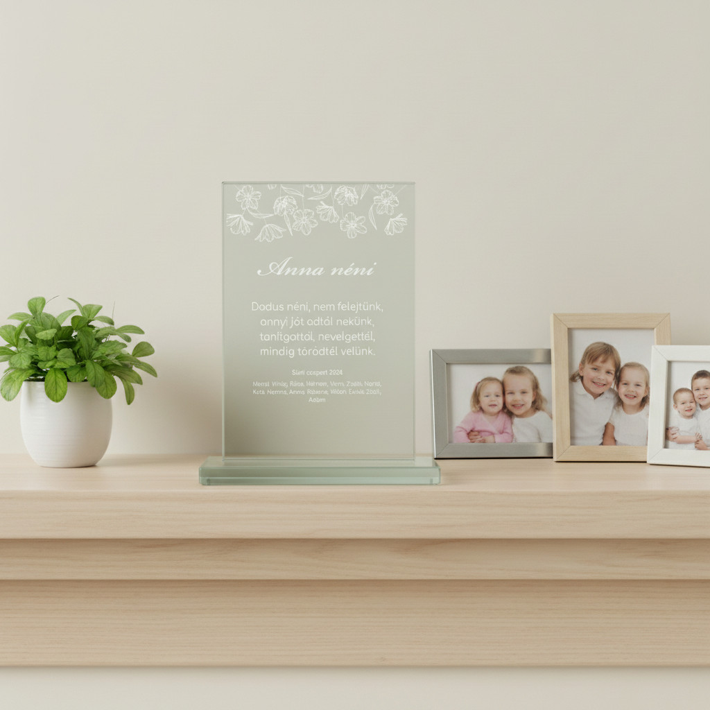 Gravíroztasd rá a dadusnéni nevét, évszámot a csoport és gyerekek nevét.