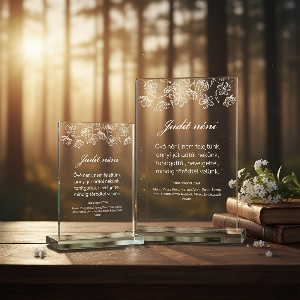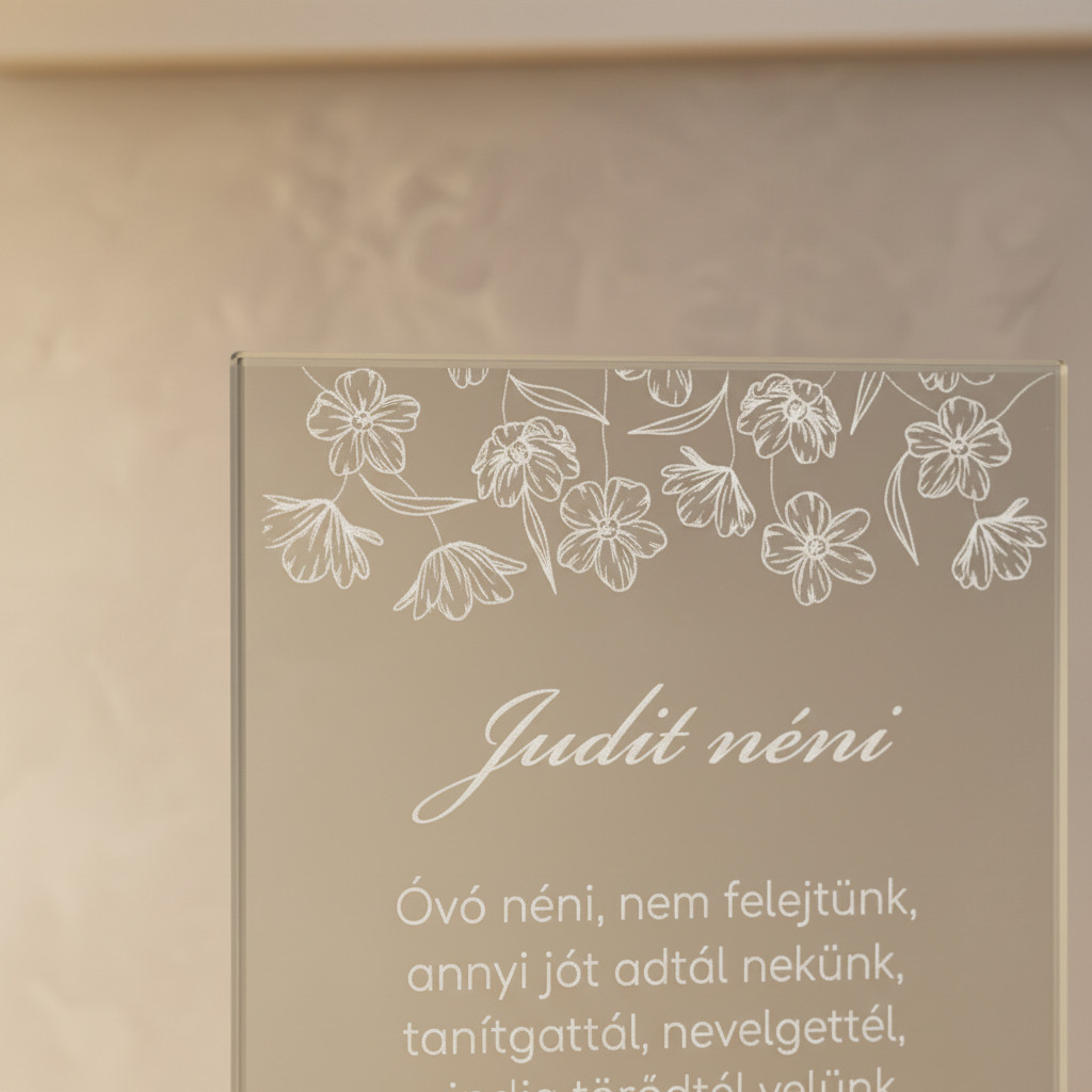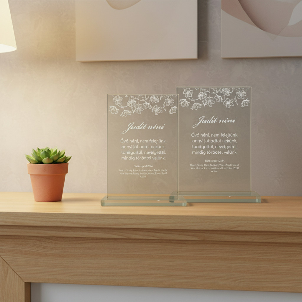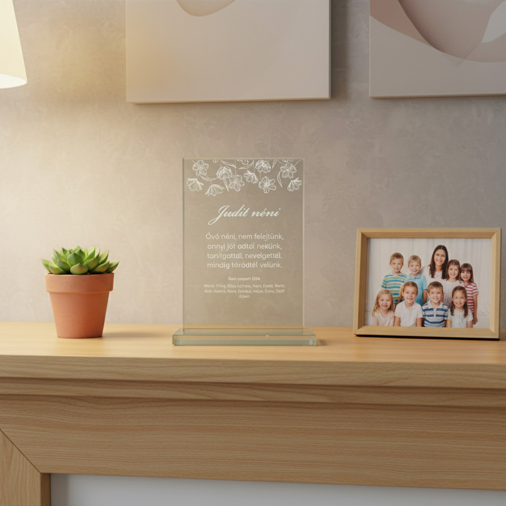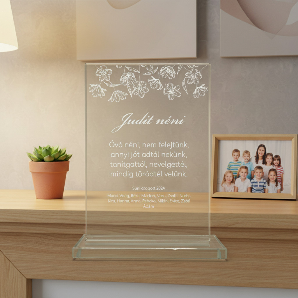 Tedd különlegessé az ajándékozást egyedi, személyreszabható üveg plakettel! Tökéletes óvónőknek köszönet, illetve búcsúajándékként.