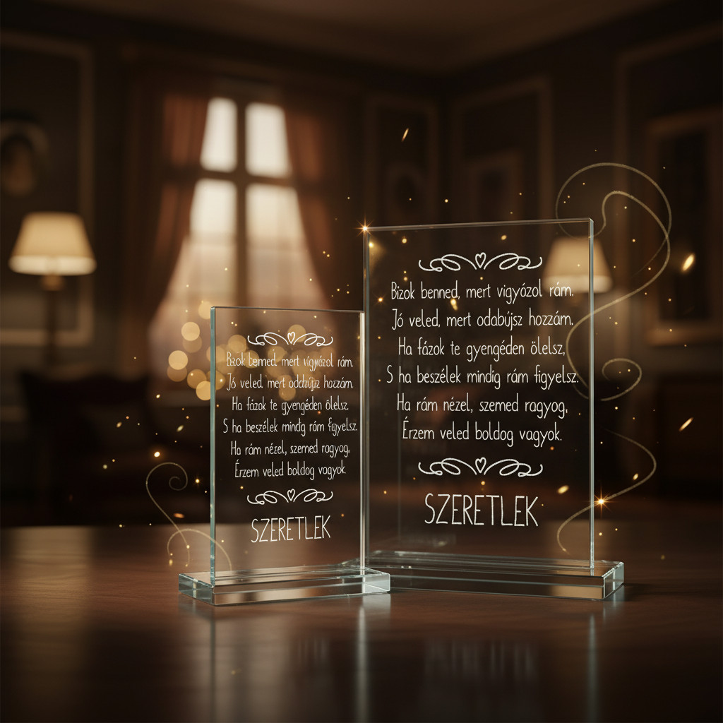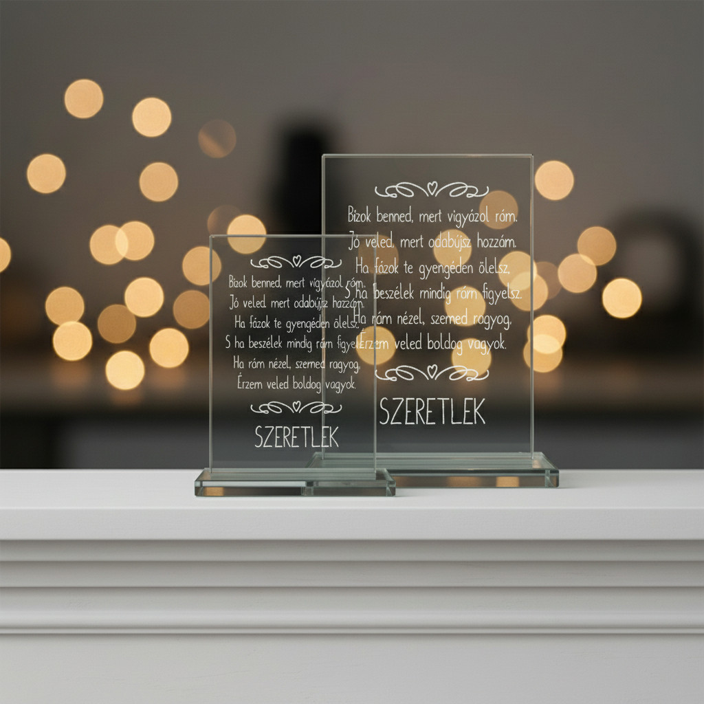 Két méretben elérhető (18,5×12,5 cm és 21×15 cm), 1 cm vastag, talpon álló kivitelben.